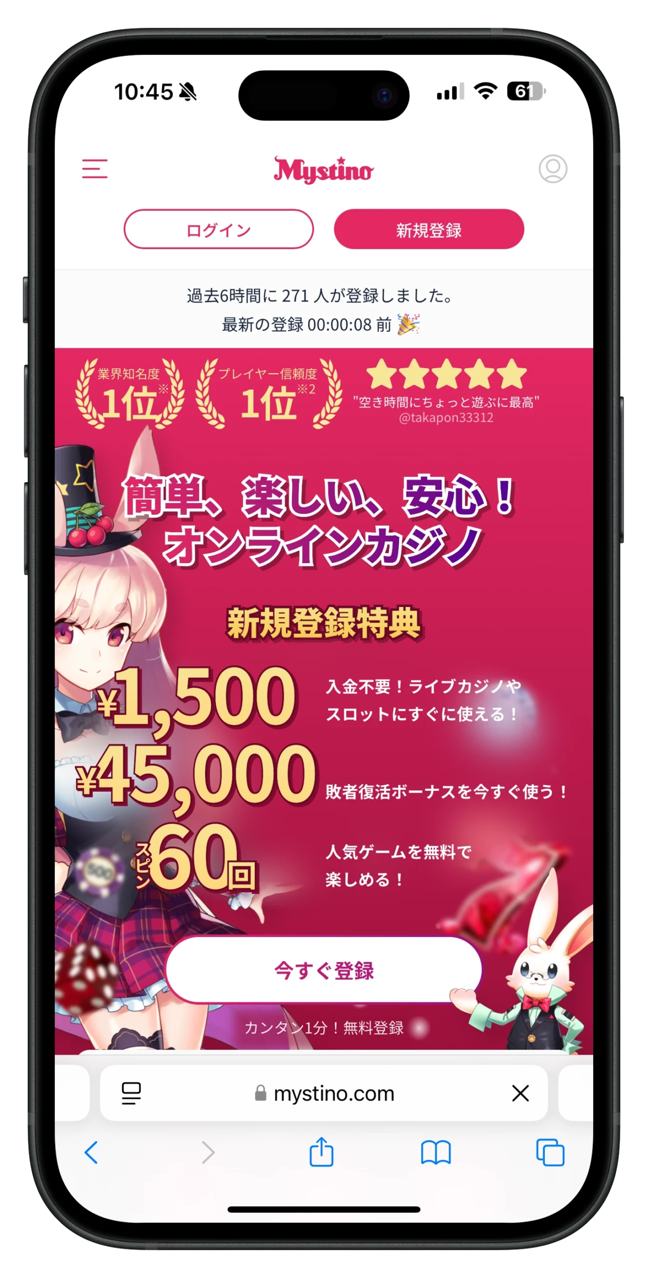 ミスティーノはモバイルデバイスでの操作性にも注力しており、公式アプリはまだ提供されていないものの、スマホやタブレット向けのウェブブラウザ版が非常に優れています。レスポンシブデザインを採用し、スムーズな操作性と優れた視覚体験を提供。移動中でもデスクトップと同様のゲームプレイを楽しめる環境を整えています。さらに、モバイル専用ボーナスキャンペーンも定期的に開催され、スマホユーザーにも十分なサービスが提供されています。